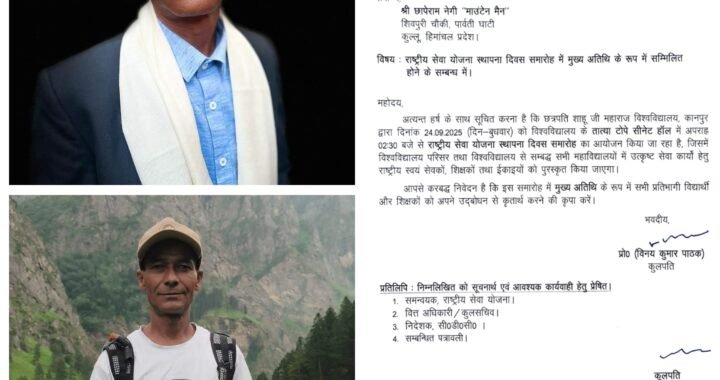 माउंटेन मैन छापेराम नेगी राष्ट्रीय सेवा योजना स्थापना दिवस में होंगे मुख्यातिथि छत्रपति शाहू जी महाराज विश्वविद्यालय, कानपुर कर रहा है कार्यक्रम।
